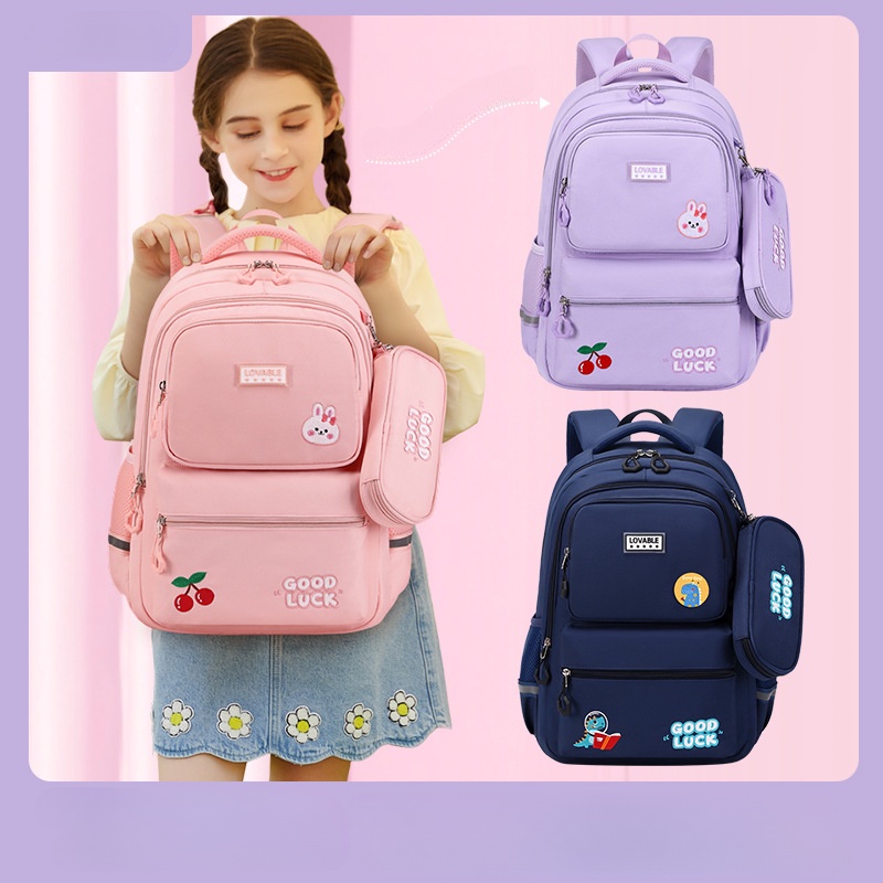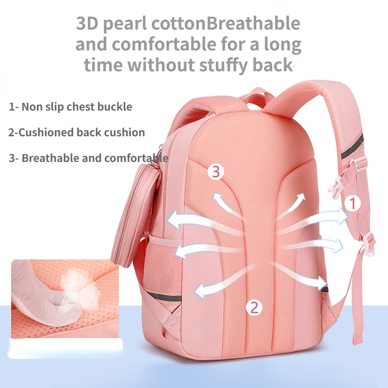 Introducing our practical, high-quality, and stylish student backpack, available in four colors that will capture the hearts of students everywhere.Gives a beautiful pencil case as a gift, Made with carefully selected high-density, waterproof Oxford cloth and featuring thick, ergonomic S-shaped shoulder straps, 3D pearl cotton, breathable punched holes, and honeycomb sponge padding, this backpack is designed to reduce the strain on students' shoulders and make carrying books and other school supplies a breeze.