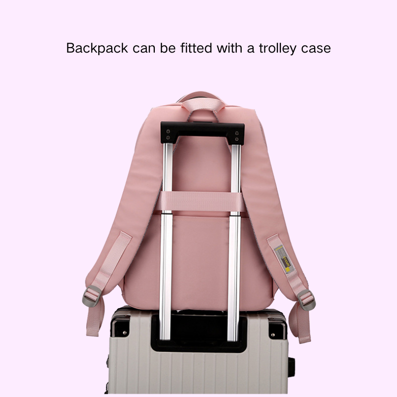 The backpack will have a sleeve on the back that can be used to attach to luggage handles, making it easy to transport during travel.