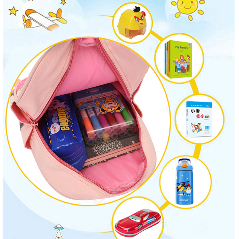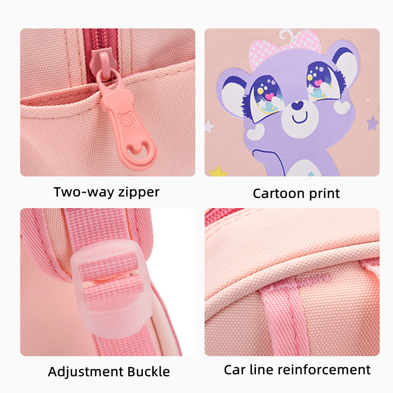The backpack is made of oxford material that won't abrade your child's skin, and is made of waterproof fabrics that are lightweight and easy to care for. Zip closure, padded and adjustable comfort shoulder straps, lightweight, stretchy and soft preschool bag
