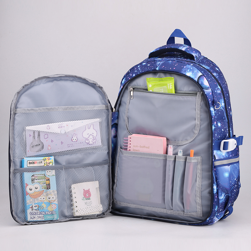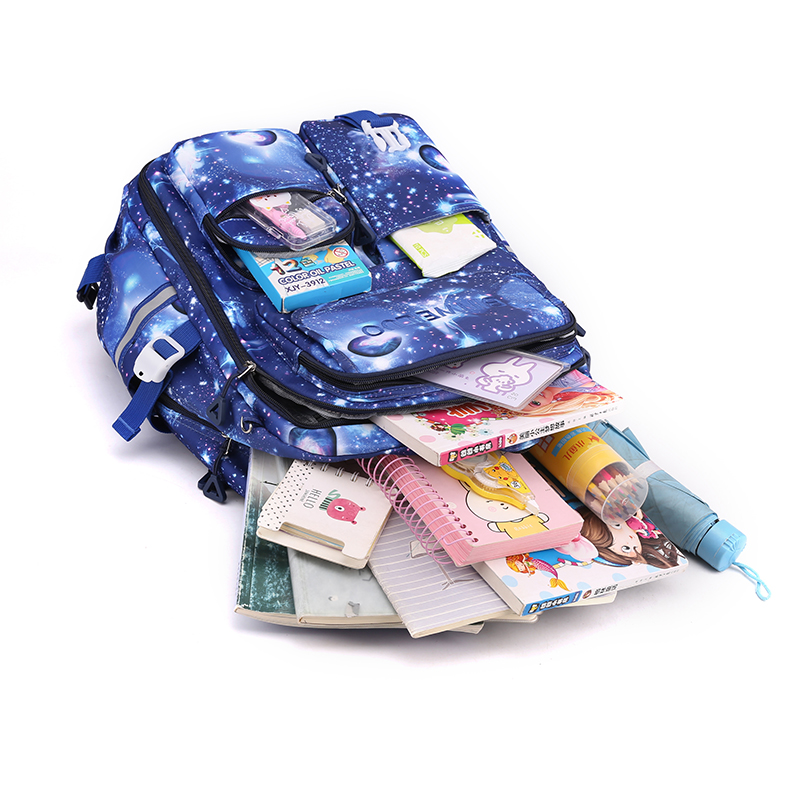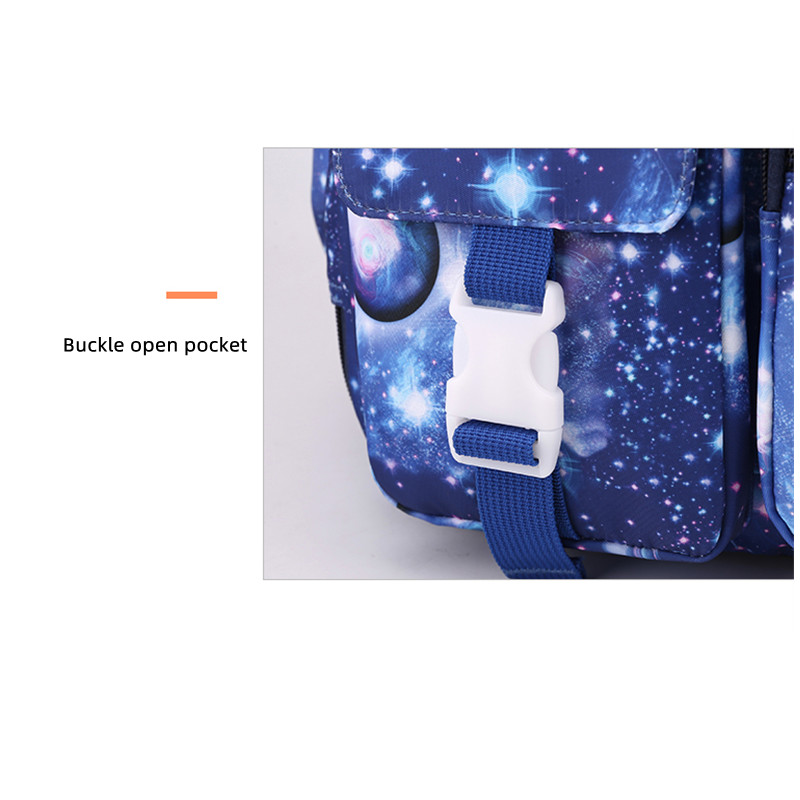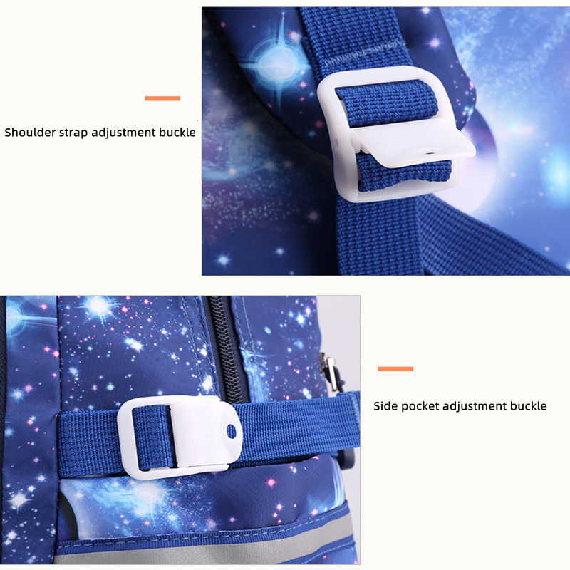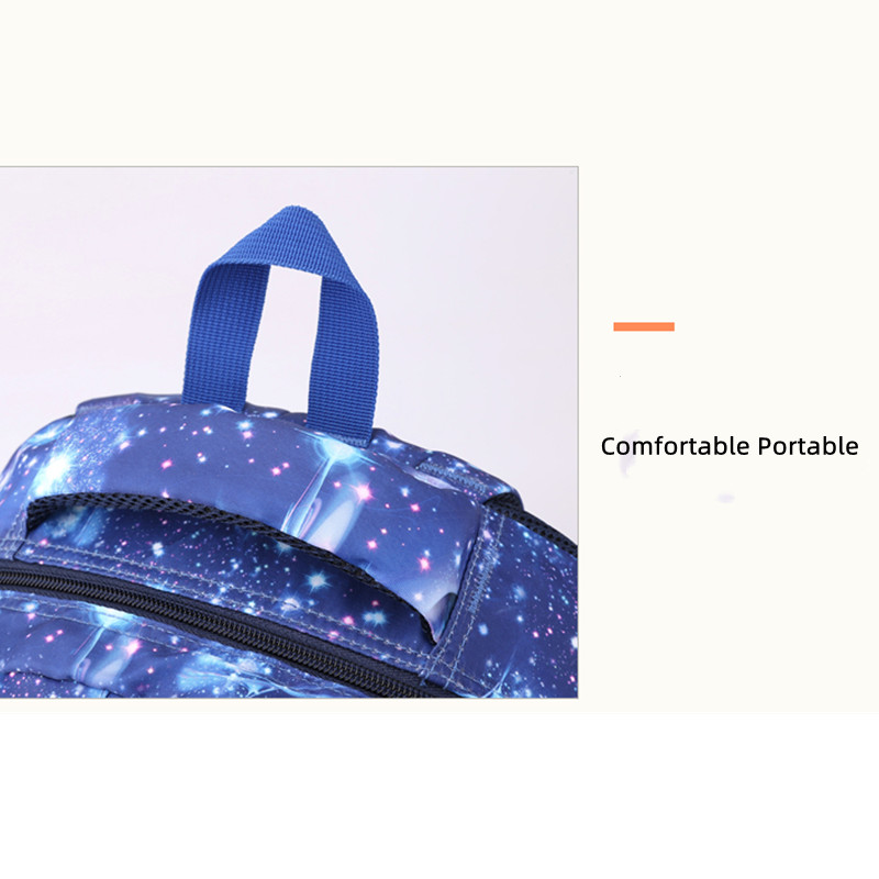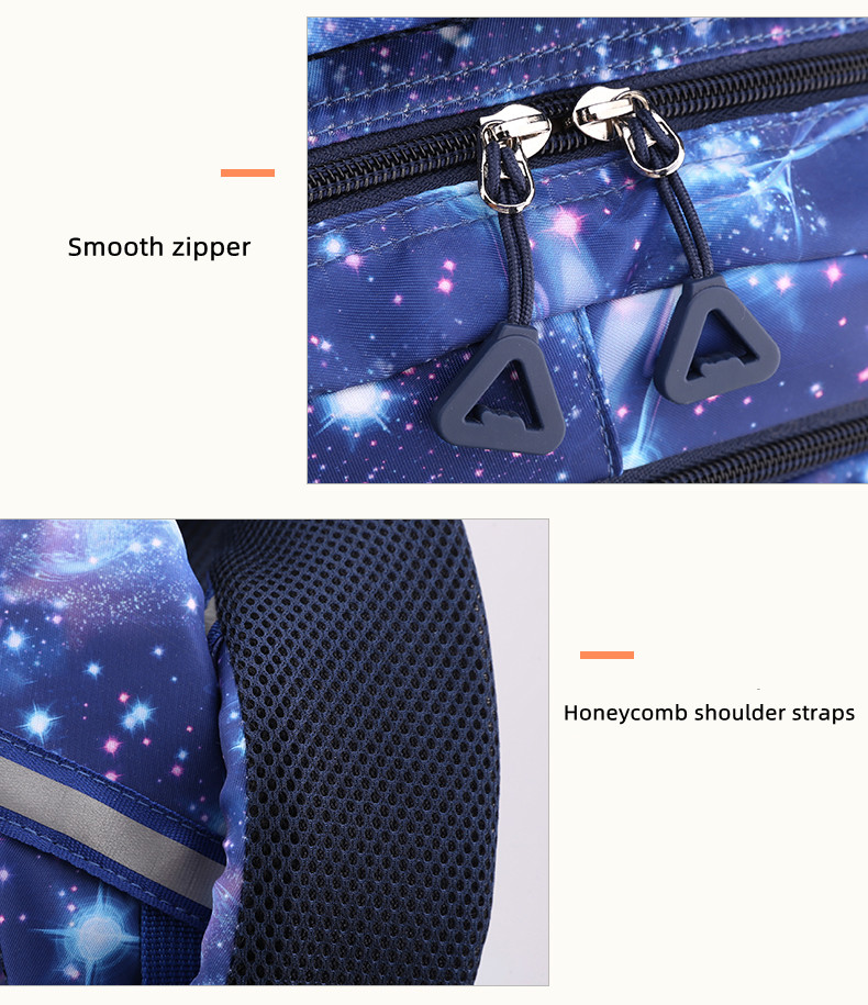 This is a unique design backpack with starry sky pattern and impressive design as the main features. And scientifically place items, organize necessary things with pockets of different sizes, and have enough space to store books, binders, keys, mobile phones, wallets, etc.