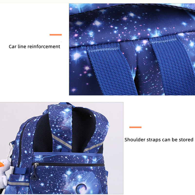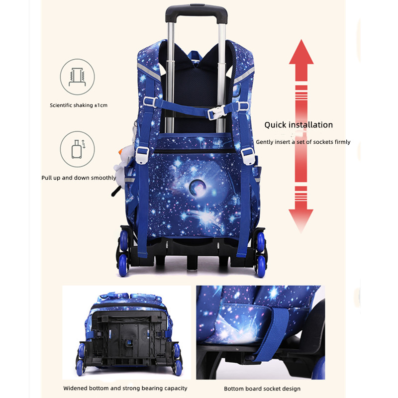 One bag is dual-use, and the backpack is dual-use design, which can be carried and pulled firmly. The full-back pole cover design can be dragged away without shaking. Simple operation gives children a good and comfortable experience!