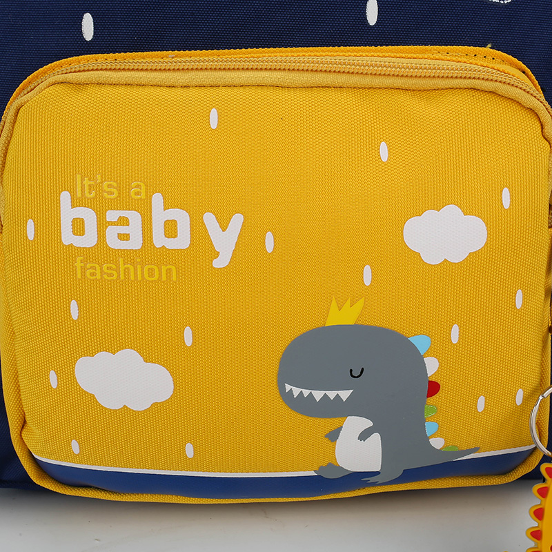 2.1 main and 1 secondary pocket design, good for storage, high-quality zipper contains dinosaur pendant