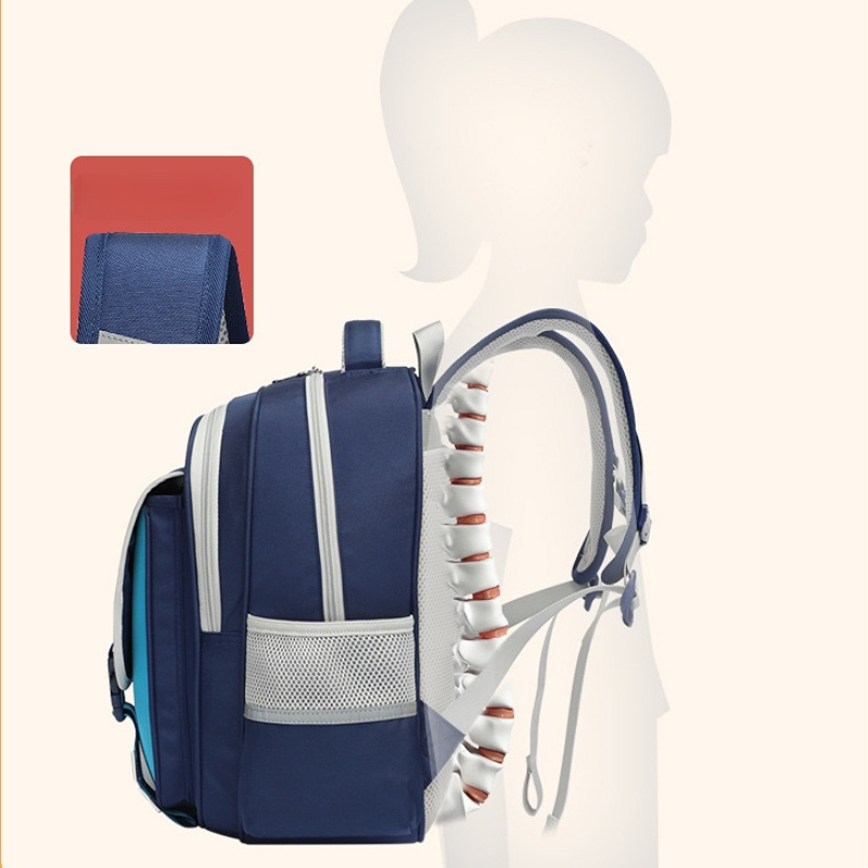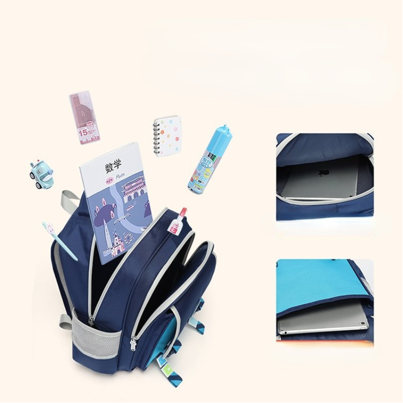 The backpack features an ergonomic and breathable back panel design that conforms to the natural contours of the body, reducing the weight and strain on your child's back and shoulders. With its large capacity and meticulous layering, the main compartment provides ample space for your child's books, laptops, and other school essentials, while maintaining a neat and organized appearance.