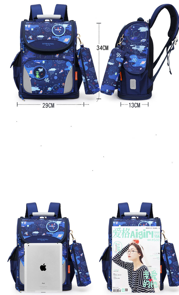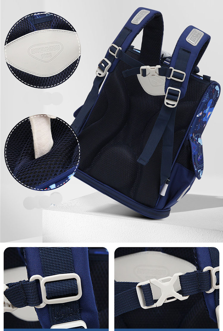 The backpack is made of Oxford fabric with a thick and comfortable design on the back to better protect the child's spine.