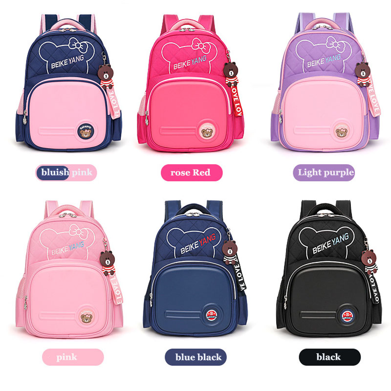 5. Product appearance: This bag is available in yellow, dark blue, black, pink, blue pink, light purple, and rose red. available. There are also exquisite bear print patterns, which upgrade the product to a higher level. The bear pendant zipper is cute and interesting, and children can’t put it down.