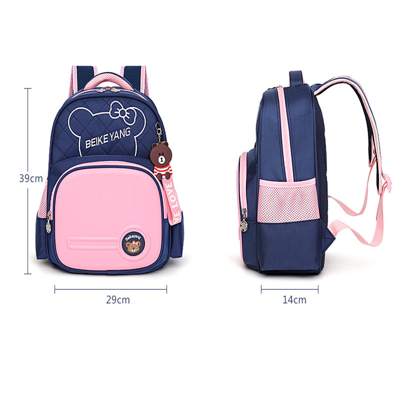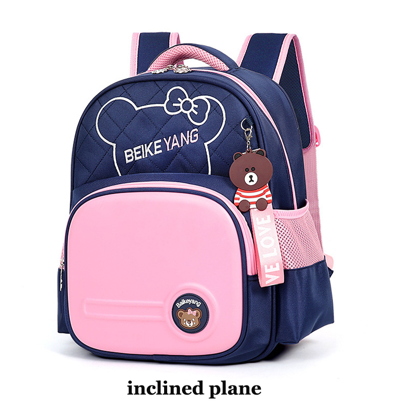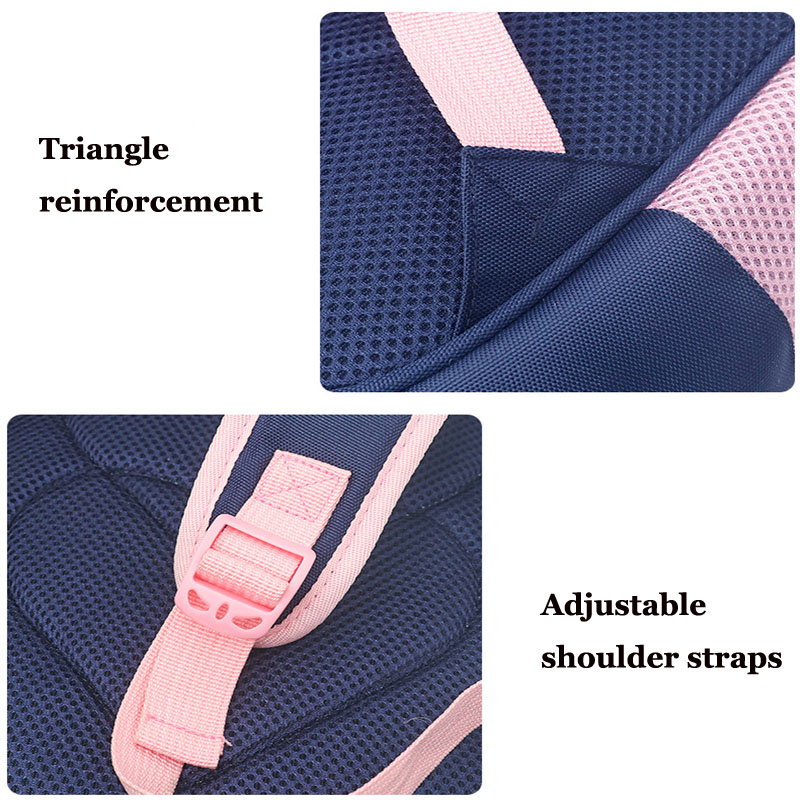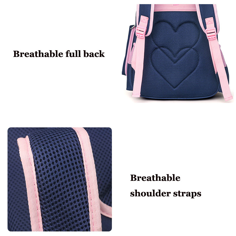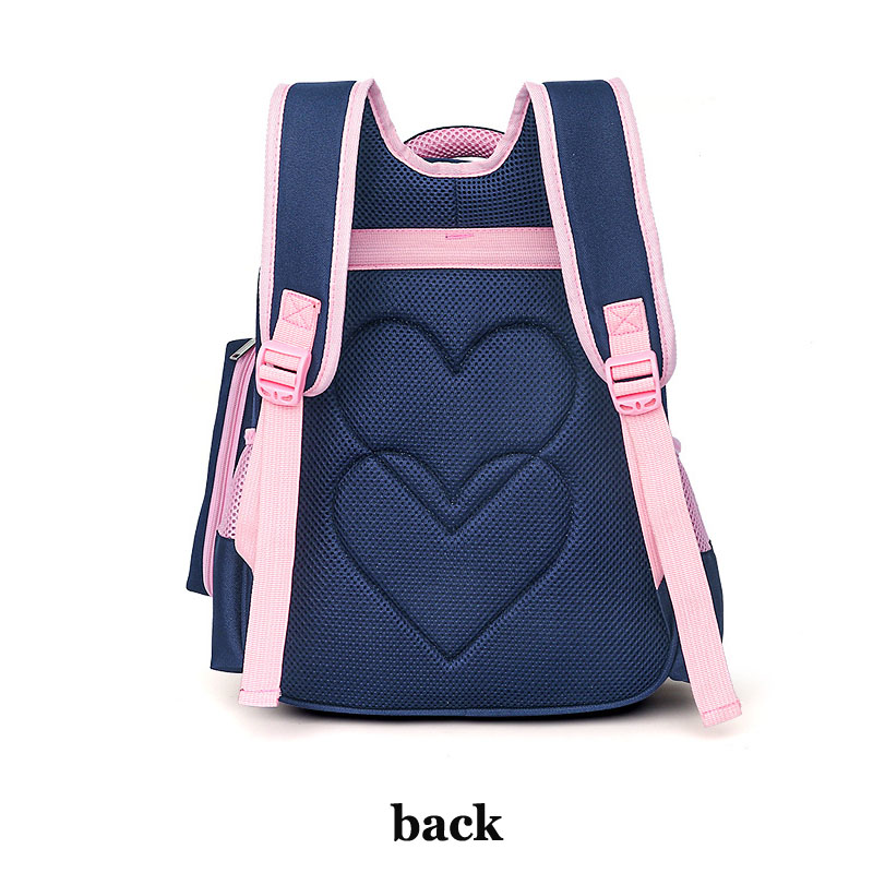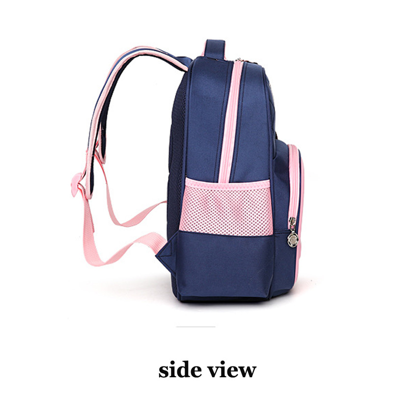 4. Product structure: This school bag has a main pocket, an inner interlayer, a front zipper pocket, and a mesh pocket on each side. The main bag can hold A4 size books, study stationery, the inner interlayer can hold a tablet, etc. The front zipper bag can hold stationery boxes, pencil bags, small toys, and the side bag can hold water bottles, drinks, umbrellas, snacks, very suitable for primary school students, deep loved by children