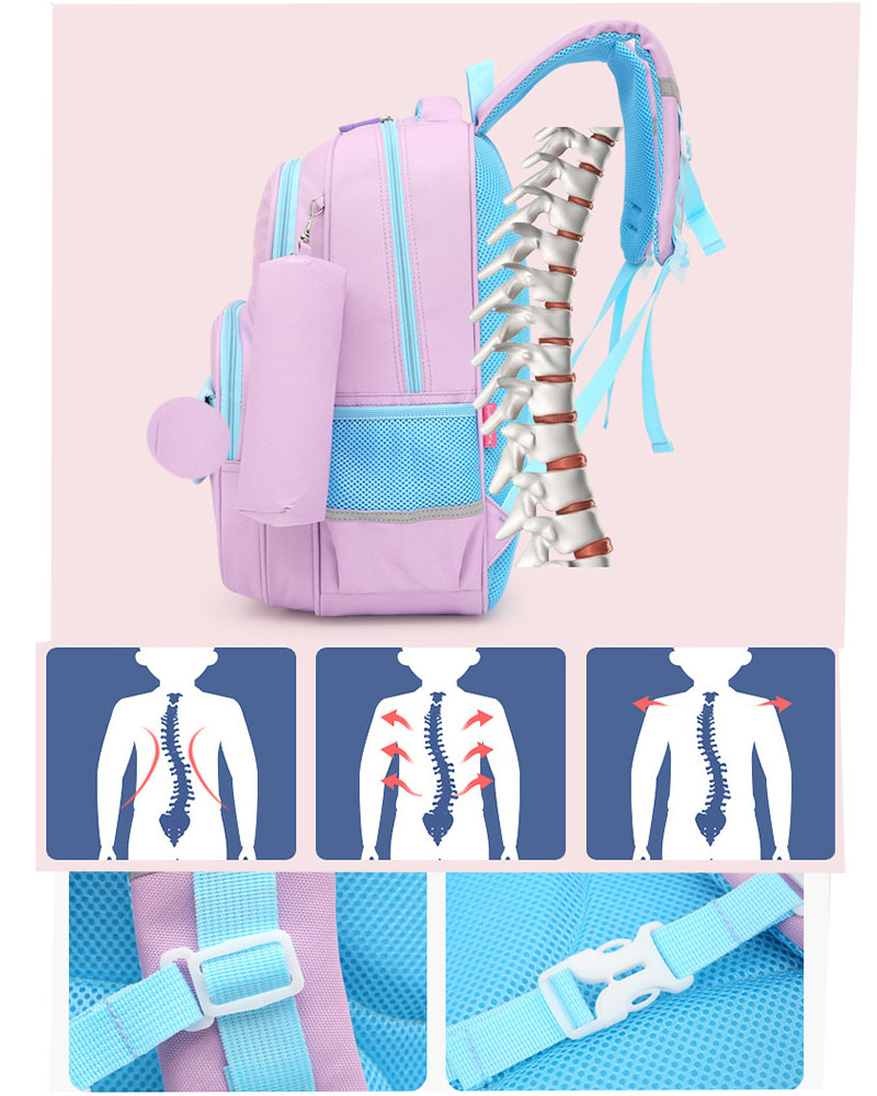 Scientific spine protection, curvilinear fitting to the back, protecting the spine from deformation, making the child carry healthy, balancing the force, high-quality accessories, which can be adjusted up and down to the appropriate position, strong fasteners, fixed shoulder straps, and prevent slipping.