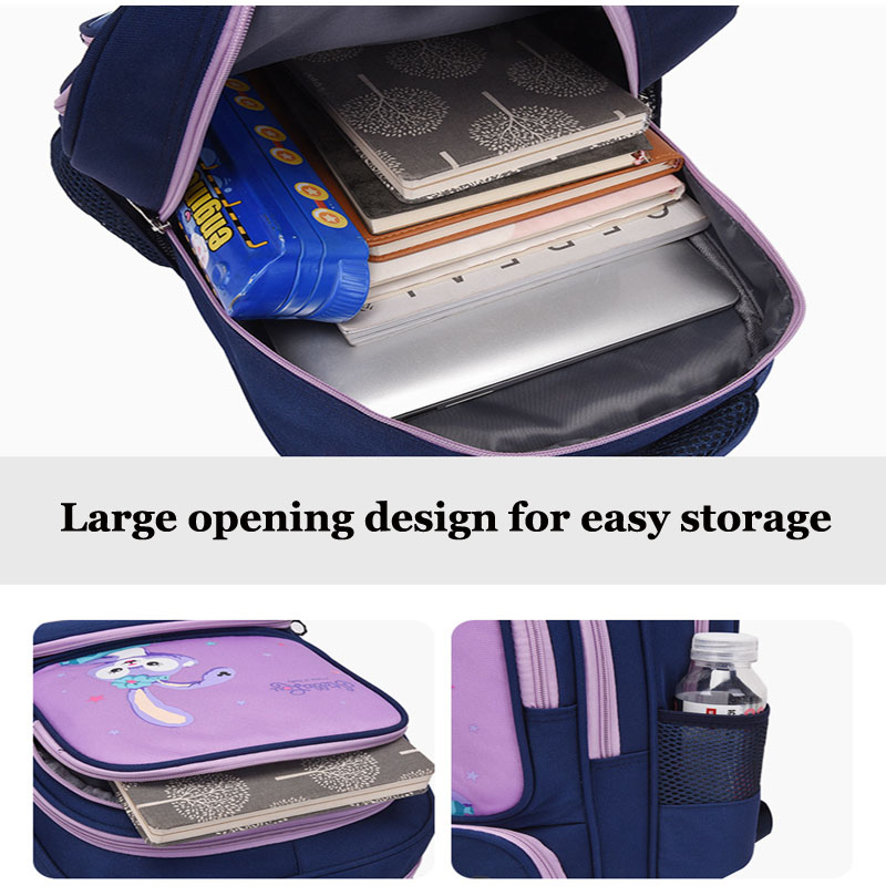 2. The large opening is designed to handle school supplies in one pack. The main pocket, side pocket, front pocket, and reasonable capacity are divided. The layout is clear and convenient for items to be neatly placed and taken.