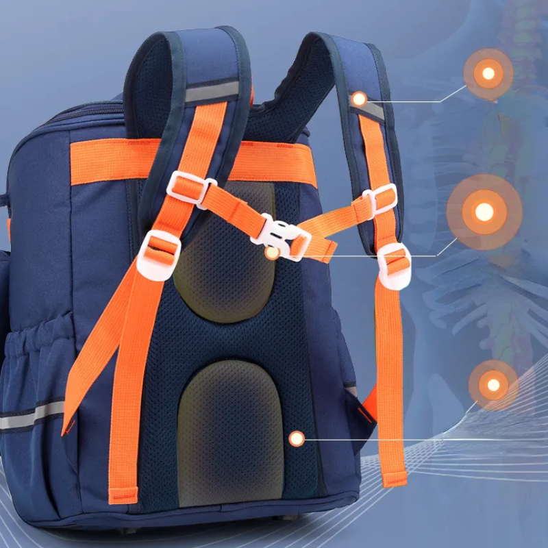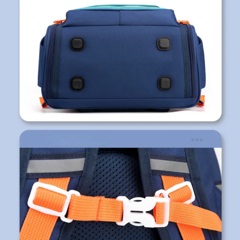 In addition to its outstanding features, the Elementary School Spine-Supportive Backpack prioritizes the safety of students during nighttime travels. It is equipped with reflective strips strategically placed on the exterior, enhancing visibility and ensuring safety in low-light conditions.
