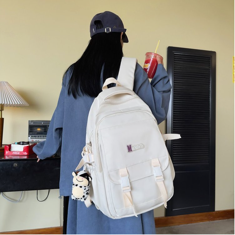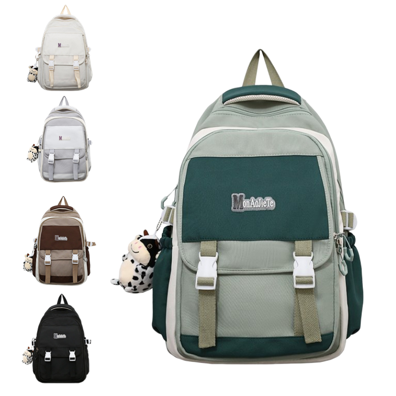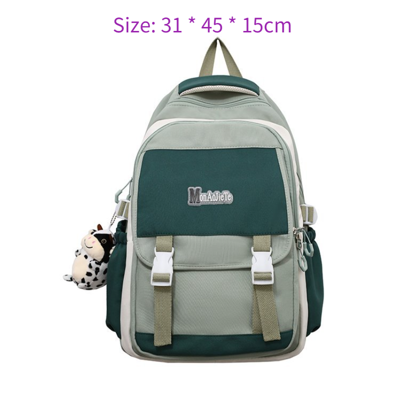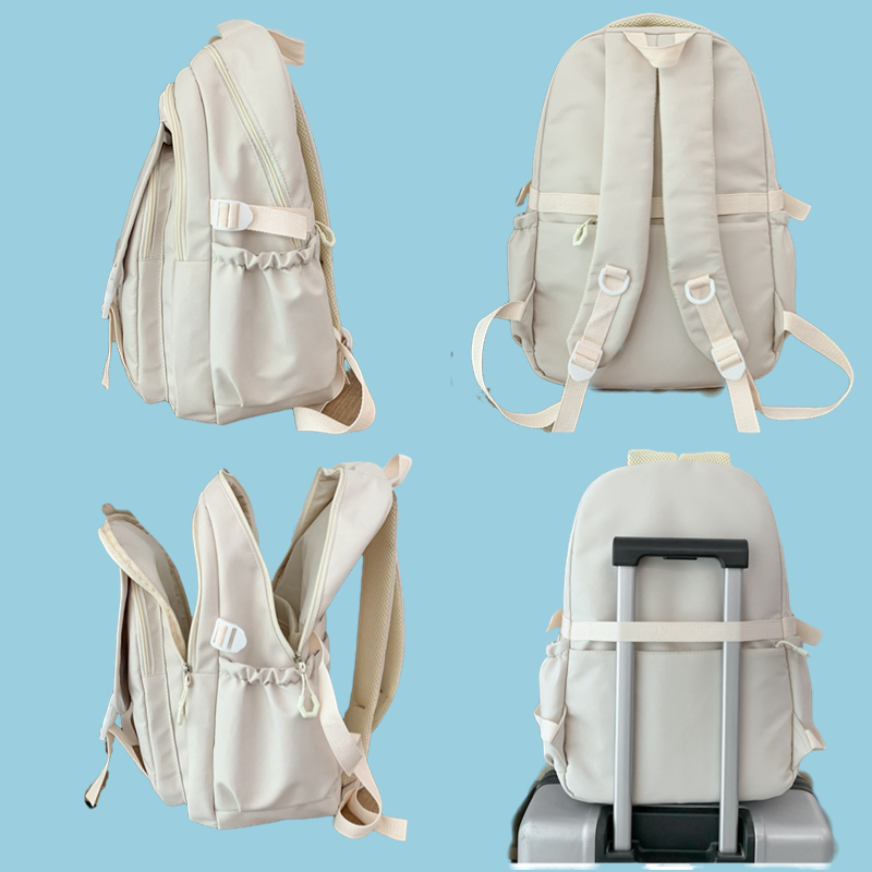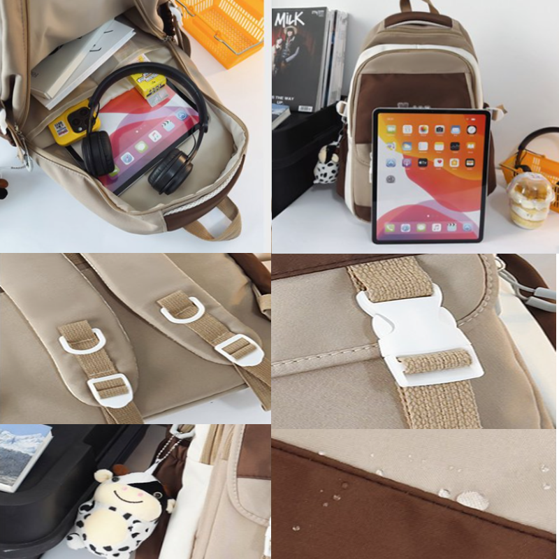 The Color Clash Backpack features a spacious main compartment that can easily accommodate textbooks, notebooks, and other school supplies. Additionally, it includes multiple compartments and pockets, allowing you to keep your belongings organized and easily accessible.The back of the bag is equipped with a luggage insert rod strap, which can be placed on the luggage