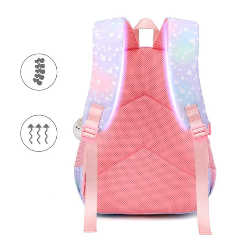 Made with carefully selected high-density, waterproof Oxford cloth and featuring thick, ergonomic S-shaped shoulder straps, 3D pearl cotton, breathable punched holes, and honeycomb sponge padding, this backpack is designed to reduce the strain on students' shoulders and make carrying books and other school supplies a breeze.