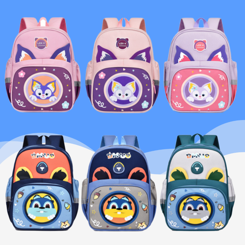 Introducing our new cartoon space backpack, perfect for kindergarten and elementary school students. The backpack comes in two different designs, featuring Disney characters Chip and LinaBell. With six different color options available, these backpacks boast a stylish and classic design, made with lightweight, durable, and waterproof Oxford cloth material.
